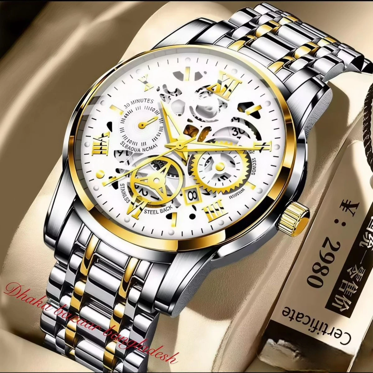 এই স্টাইলিস্ট ও ইউনিক ডিজাইনের ঘড়িটির সাথে যা যা পাচ্ছেন তা হলো: ১. একটি প্রিমিয়াম কোয়ালিটির বক্স । ২. ১ বছরের ওয়ারেন্টি এবং ২ বছরের এর সার্ভিস ওয়ারেন্টি কার্ড । ৩. এক্সট্রা একটি প্রিমিয়াম কোয়ালিটির ব্যাটারি।