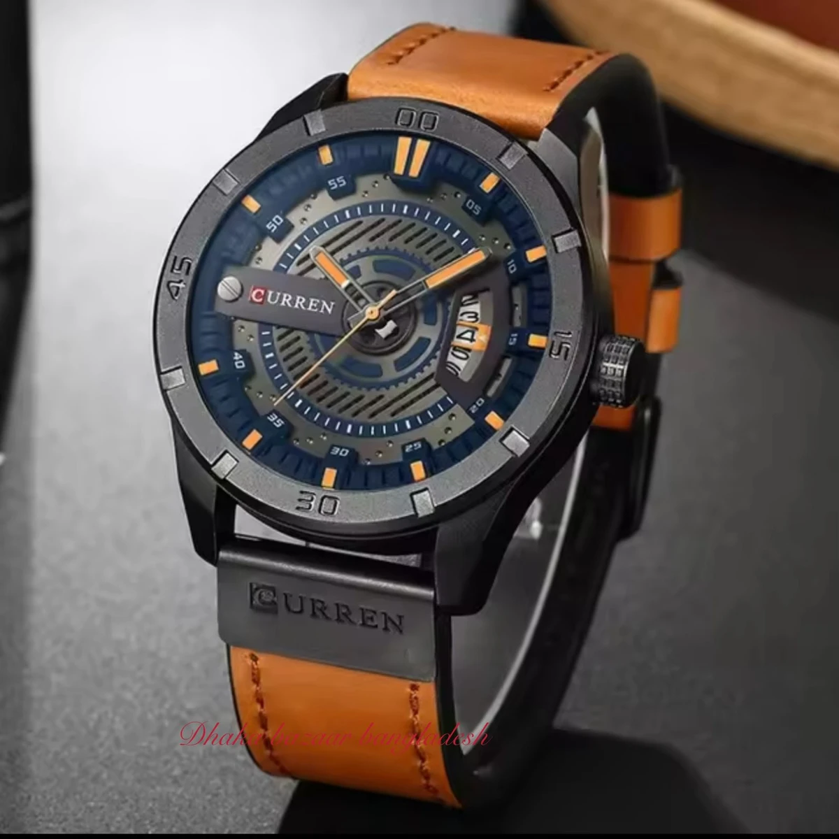 CUREENT 83011 আর্টিফিশিয়াল লেদার নতুন ডিজাইনের পুরুষদের জন্য ঘড়ি BROWN